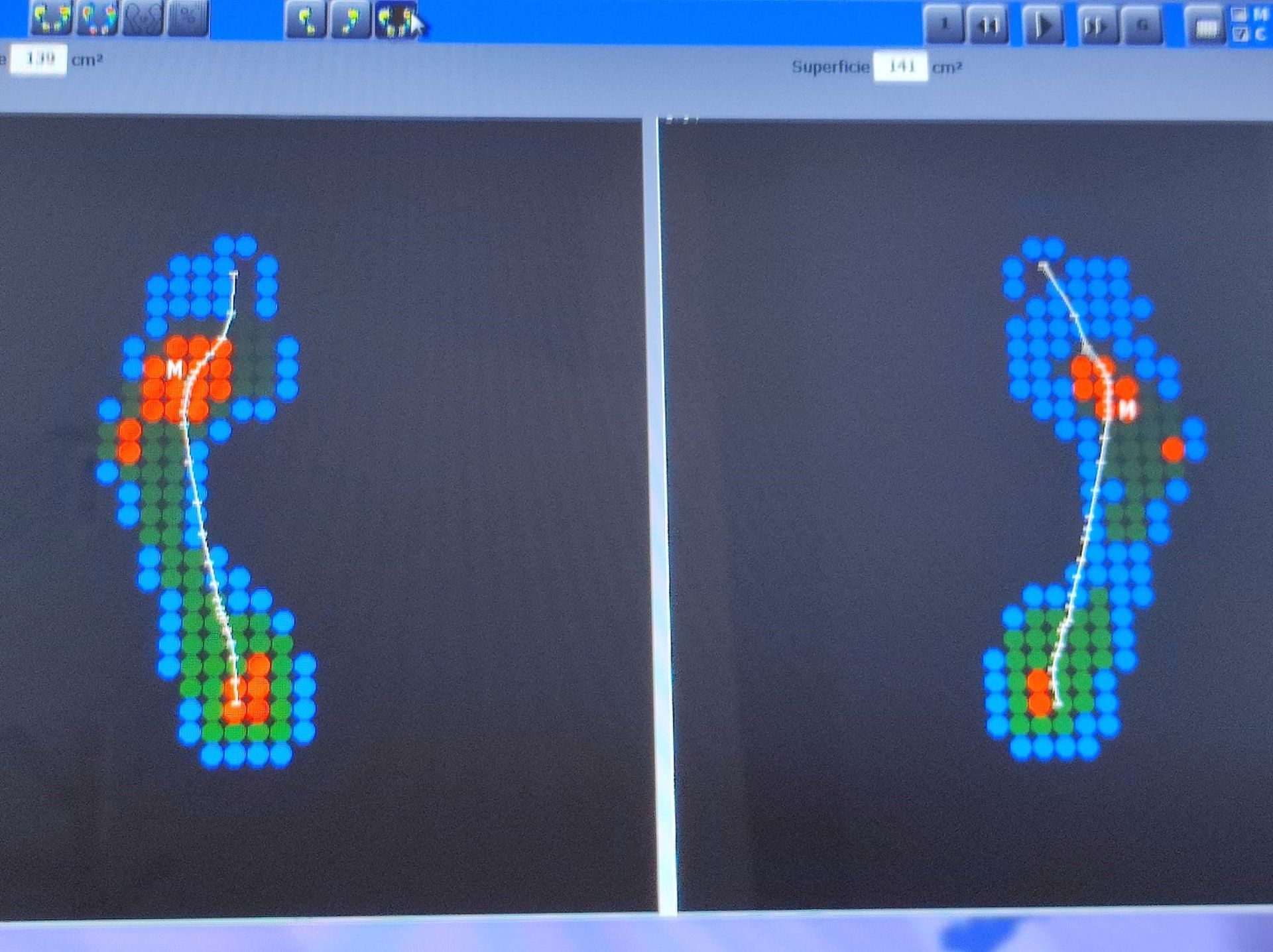 El estudio biomecánico de la marcha o de la pisada consiste en analizar mediante una avanzada tecnología (plataforma de presiones) la posición de los pies tanto en estatica (a pie derecho) como en dinámica (andando), además de valorar rodillas, caderas y espalda.